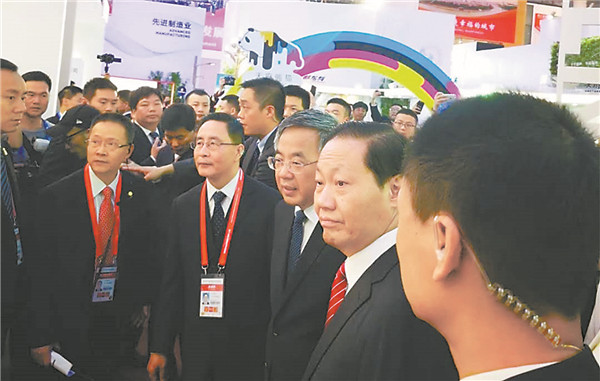 中共中央政治局委員、國務院副總理胡春華,四川省委書記彭清華等領導考察通威所在的“一帶一路”國際合作館