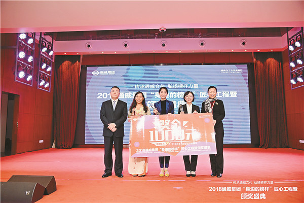 通威集團禚玉嬌總裁及參會領(lǐng)導為“身邊的榜樣”頒獎