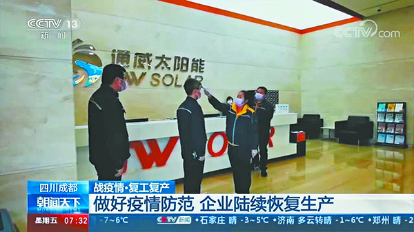央視新聞頻道《朝聞天下》欄目報道通威太陽能實施嚴格防疫措施