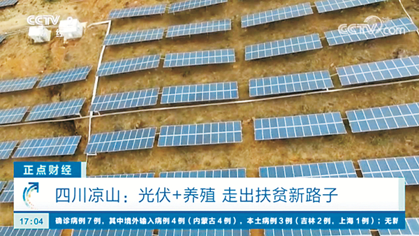 報道以《光伏+養殖,走出扶貧新路子》為題,介紹了喜德縣農光牧光一體光伏扶貧電站的地理位置、占地規模、設備運行等情況,并表示,電站除正常發電外,還使光伏發電和養殖協同發展,達到了“企業發電有收益,群眾養殖有收益”的雙收益效果,走出了一條脫貧扶貧的新路子。5月,中國新聞社推出《探訪涼山“光伏+種養殖”產業:光伏電站新模式的多元探索》,深度聚焦通威光伏扶貧新路徑。
