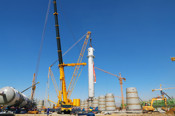 9月8日09:38分,內蒙古通威高純晶硅公司二期項目精餾裝置首吊成功。本次作業(yè)由400噸大型履帶吊車、500噸汽車吊車配合完成。為保證本次吊裝作業(yè)順利進行,項目部前期做足了地面組合、保溫施工、平臺施工、塔體清洗、塔體附件施工等準備。公司各專業(yè)技術人員,對各工序作業(yè)嚴格檢查、清單核對。安裝組牽頭反復對《吊裝方案》審核修訂,并組織進行CAD吊裝模擬測試,同時聘請了專家組論證。9月7日,公司再次組織進行了清單確認檢查。9月8日,按計劃順利完成二期項目精餾裝置首吊。本次首吊成功,極大地鼓舞士氣,同時為后續(xù)精餾塔吊裝作業(yè)積累經(jīng)驗。
