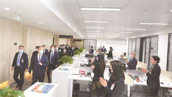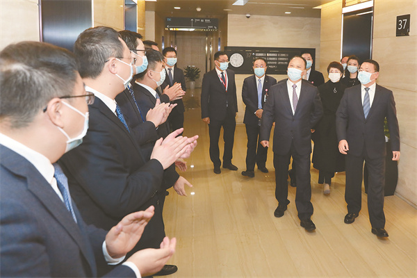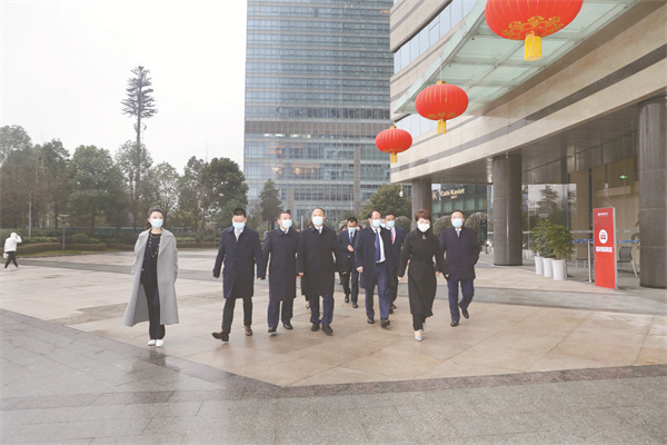 “新年好!”每到一處,劉主席都向大家揮手致以新春的問候,并仔細(xì)查看員工辦公環(huán)境,與大家親切交流,關(guān)心和了解員工上班第一天的工作情況。在聽取各部門負(fù)責(zé)人關(guān)于當(dāng)前重點工作和重點項目推進(jìn)情況的匯報后,主席對大家過去一年取得的優(yōu)異成績表示祝賀,并鼓勵大家在新的一年里再創(chuàng)佳績。
