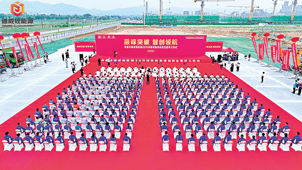 2023年3月,云南通威二期20萬噸高純晶硅項目開工,僅用66天完成全部18座精餾塔裝置吊裝,塔件焊接工作一次合格率達99.5%,吊裝工作一次就位;10月,項目主體結構完成封頂,進入收尾階段。這是高純晶硅領域全球首個20萬噸級項目。項目建成后,云南通威高純晶硅產(chǎn)能將超過25萬噸,成為全球單體生產(chǎn)規(guī)模最大的基地之一。