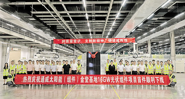 通威太陽能科技金堂基地16GW光伏組件項目首件順利下線,自設備進場安裝調試到首件下線僅用10天,刷新行業(yè)紀錄。項目建成后形成年產(chǎn)16GW高效晶硅光伏組件產(chǎn)品生產(chǎn)能力,將進一步完善“成都造”光伏產(chǎn)業(yè)鏈條。