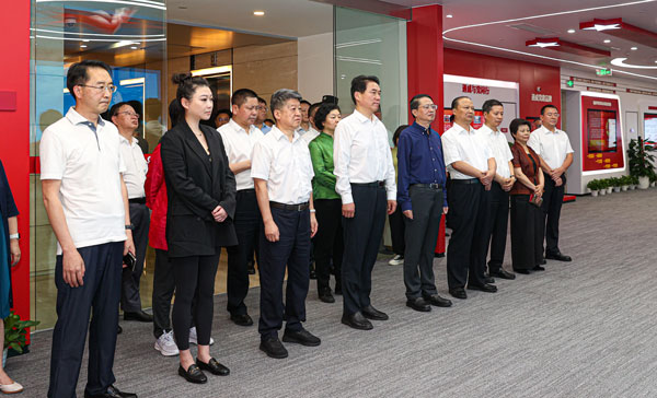 郭強(qiáng)常委、趙俊民常委一行首先參觀了通威紅·同心家園,聽取集團(tuán)統(tǒng)戰(zhàn)工作思路、五大“同心”行動成果、樓宇統(tǒng)戰(zhàn)及“通威紅”黨建品牌等情況介紹后,郭強(qiáng)常委對集團(tuán)統(tǒng)戰(zhàn)工作給予了高度肯定,并表示,作為一家大型民營企業(yè),通威集團(tuán)積極探索創(chuàng)新統(tǒng)戰(zhàn)工作的有效舉措,打造了全國統(tǒng)戰(zhàn)工作示范點(diǎn)位,在新的社會階層人士統(tǒng)戰(zhàn)工作方面取得了顯著成效,為民營企業(yè)統(tǒng)戰(zhàn)工作積累了可復(fù)制、可推廣的統(tǒng)戰(zhàn)工作新經(jīng)驗(yàn)。