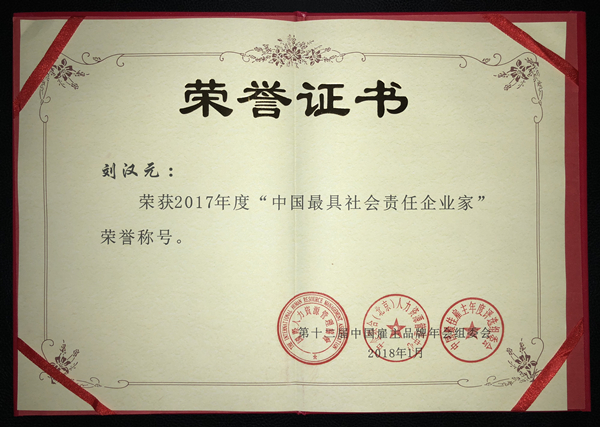 劉漢元主席榮獲“2017中國最具社會責(zé)任企業(yè)家”大獎