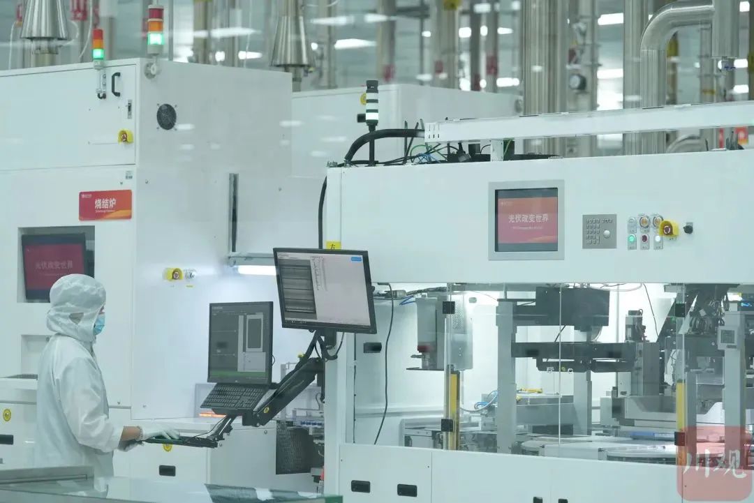 值得一提的是,二期項目8月30日第一臺設備進場,9月16日整線貫通生產、首片電池片下線,整個過程僅用時18天。其間先后遭遇高溫、疫情等不利因素,之所以能夠刷新生產速度,除了“防疫泡泡”等閉環管理模式,也有5G應用后人工大幅減少、機器自動化生產的助力。疫情之下,無人工廠優勢凸顯。